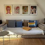 Die 70 m^2 große 3 Zimmer-Kuche-Bad Wohnung Im Dachgeschoss Eines Kernsanierten 3 Familienhauses verfügt über eine Sitzecke, ausgestattet mit einem Sofa und einem Schreibtisch und modernen Annehmlichkeiten wie einem Flachbildfernseher mit Satellitenkanälen. Es gibt Zimmer mit Parkettböden. Gästen stehen Betten mit Daunenkissen zur Verfügung. Es gibt 1 Badezimmer mit einer getrennten Toilette, einer Badewanne und einer Dusche und einem Haartrockner und Badelaken.